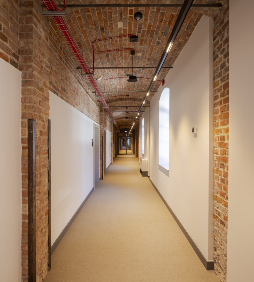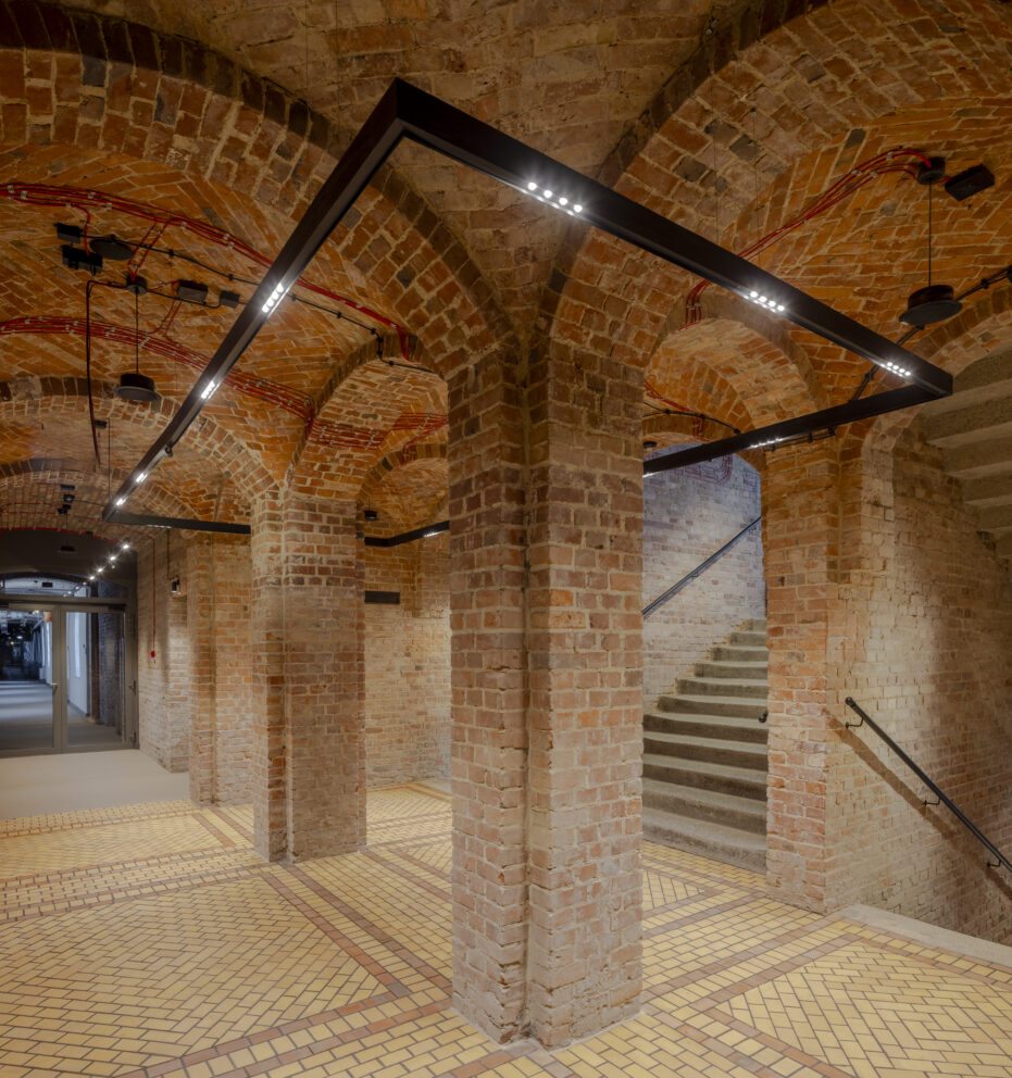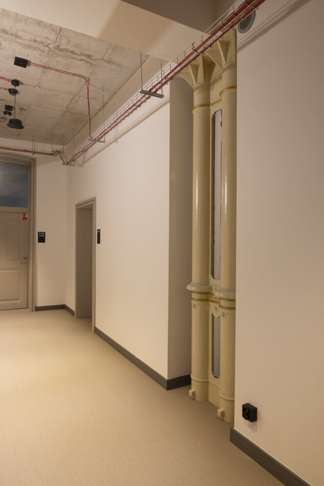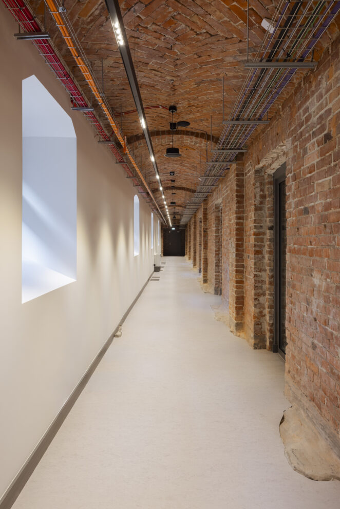 XIX-wieczny budynek pokoszarowy, przez dekady pozbawiony funkcji użytkowej oraz reprezentacyjnej, wymagał dogłębnej analizy konserwatorskiej. Jednym z największych wyzwań było dostosowanie obiektu do nowej funkcjonalności, przy jednoczesnym zachowaniu bogatego dziedzictwa architektonicznego, bez ingerencji w jego kubaturę. Całość prac została uzgodniona z wojewódzkim konserwatorem zabytków, dlatego rozpoczęcie działań poprzedziły gruntowne badania archeologiczne, które pozwoliły ustalić autentyczność zachowanych elementów oraz harmonogram etapów rewaloryzacyjnych „czerwonych koszar”. Dzięki zabiegom konserwatorskim większość substancji zastanej koszar została wyeksponowana i odtworzona, a braki oraz ubytki uzupełnione odpowiednimi substytutami materiałowymi.