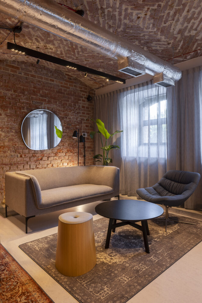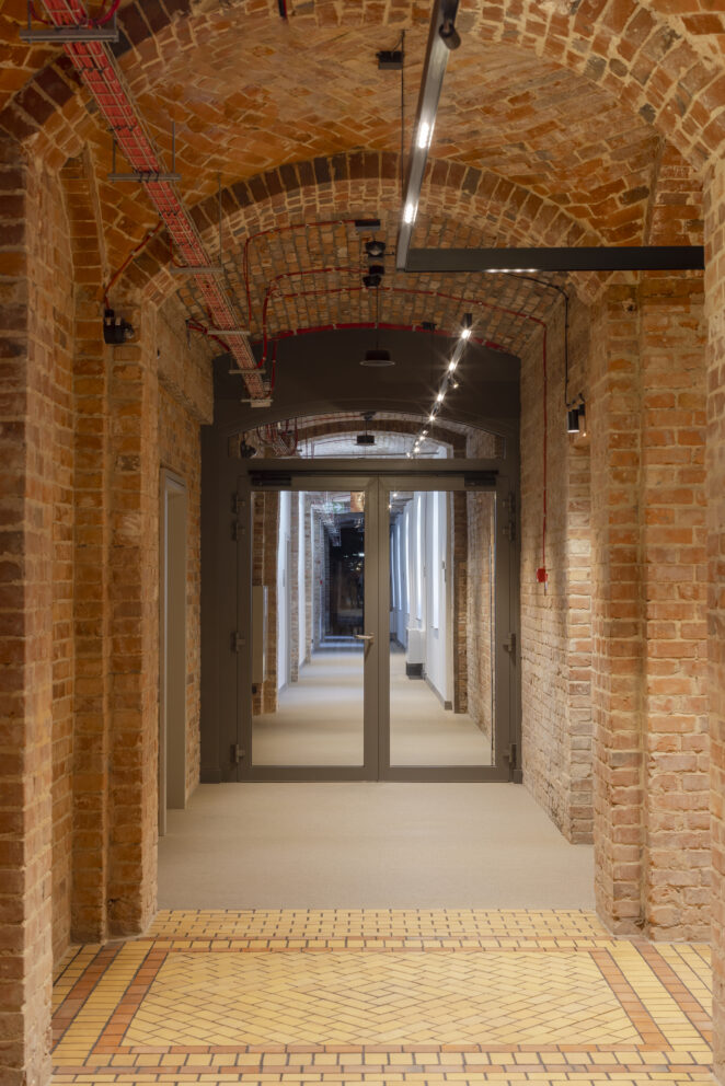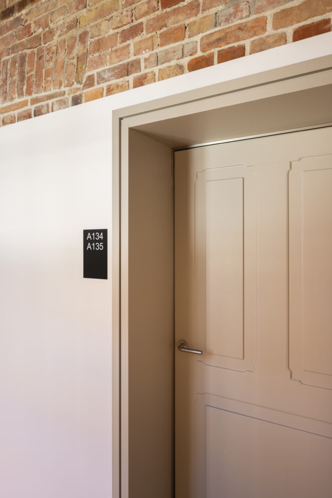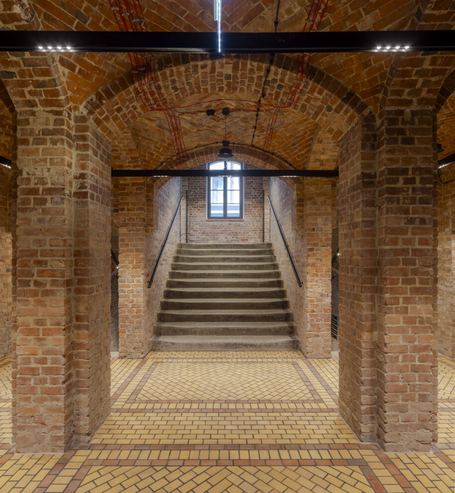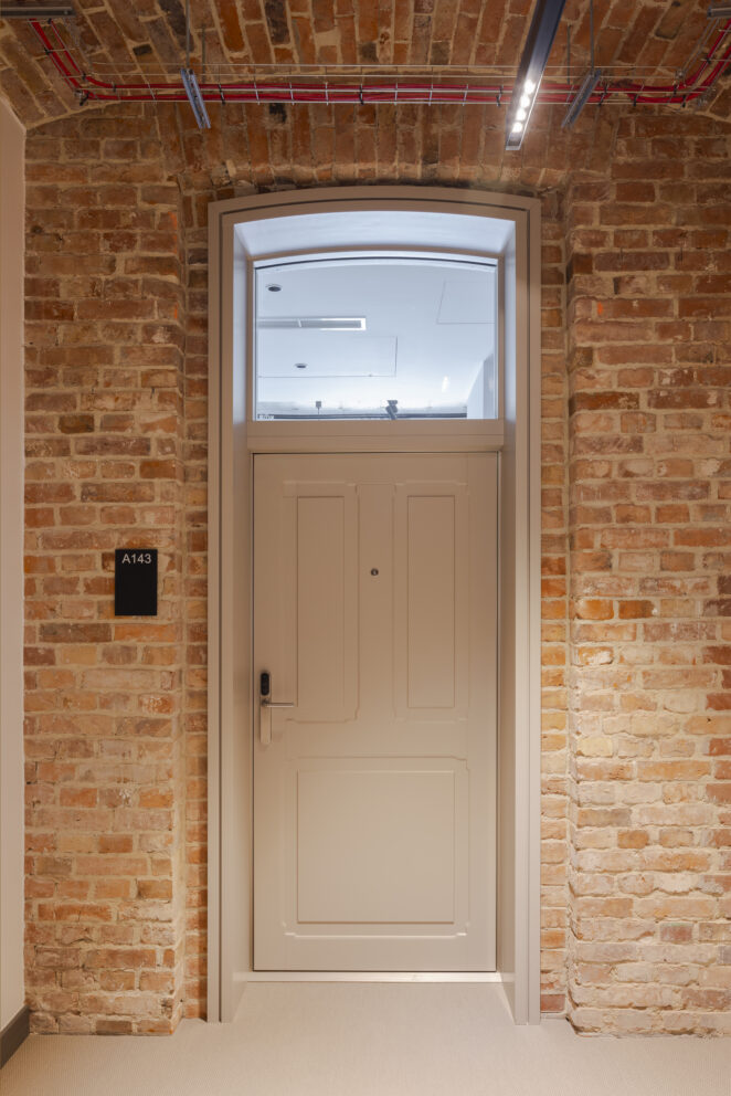 XIX-wieczny budynek pokoszarowy, przez dekady pozbawiony funkcji użytkowej oraz reprezentacyjnej, wymagał dogłębnej analizy konserwatorskiej. Jednym z największych wyzwań było dostosowanie obiektu do nowej funkcjonalności, przy jednoczesnym zachowaniu bogatego dziedzictwa architektonicznego, bez ingerencji w jego kubaturę. Całość prac została uzgodniona z wojewódzkim konserwatorem zabytków, dlatego rozpoczęcie działań poprzedziły gruntowne badania archeologiczne, które pozwoliły ustalić autentyczność zachowanych elementów oraz harmonogram etapów rewaloryzacyjnych „czerwonych koszar”. Dzięki zabiegom konserwatorskim większość substancji zastanej koszar została wyeksponowana i odtworzona, a braki oraz ubytki uzupełnione odpowiednimi substytutami materiałowymi.